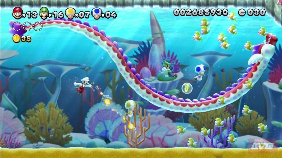 The Fire Flower, Ice Flower, Penguin Suit, Propeller Mushroom and Mini Mushroom make a welcome comeback, but the game also features a new power-up, the Super Acorn. This item gives Mario and company a Flying Squirrel Suit, which allows them to gracefully glide through the air, as well as grab onto and push off walls. Furries will undoubtedly go mental for this one!