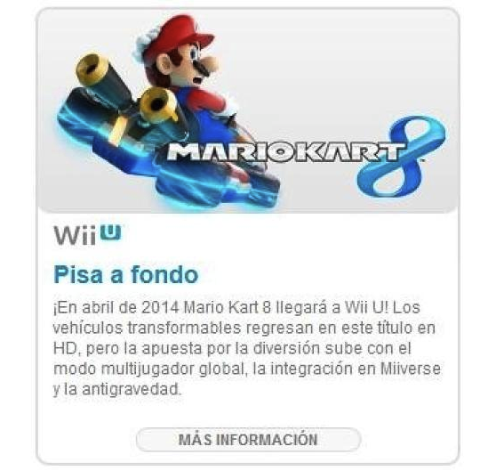 According to a Spanish language newsletter issued by Nintendo of Europe Mario Kart 8 has been given a release window of April 2014.